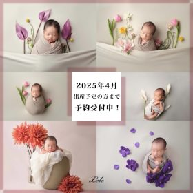 2025年4月ご出産の方までご予約受付開始いたします! 関東ニューボーンフォト Lele ミニプラン33,000円からの3つのプラン 生花を使った素敵…