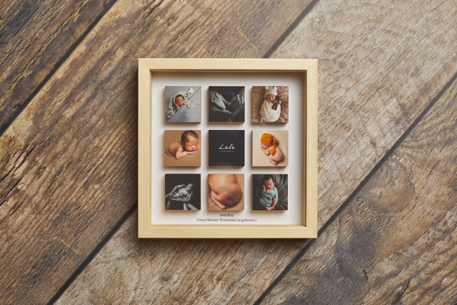 背景には一言入れる事もできますのでお子様のお名前や生年月日、お母様からのメッセージを入れて世界に一つだけのフレームをお楽しみ下さい。